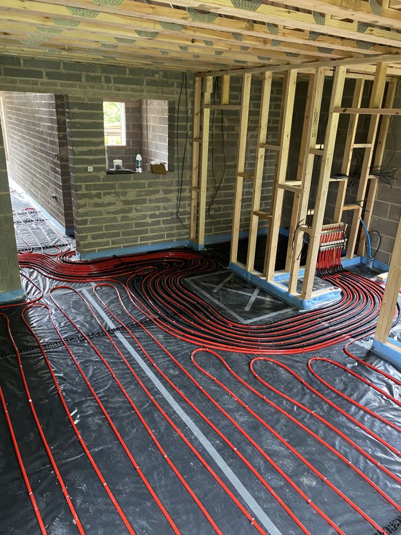 The first day we prepared the house with 100mm insulation and membrane before installing the 8 port manifold and pipework.