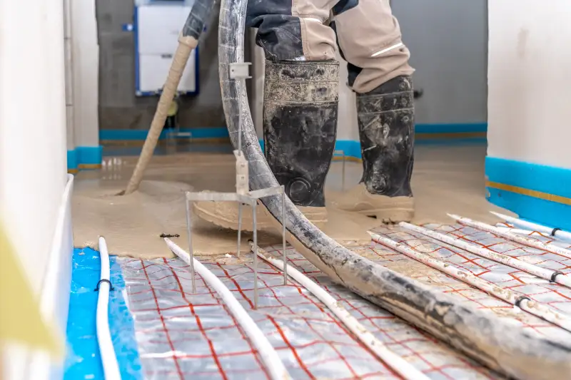 For projects incorporating underfloor heating, pump-applied screed offers particular advantages. The liquid material flows completely around heating pipes, eliminating air pockets that could reduce thermal efficiency. This maximises heat transfer whilst protecting the heating system components.